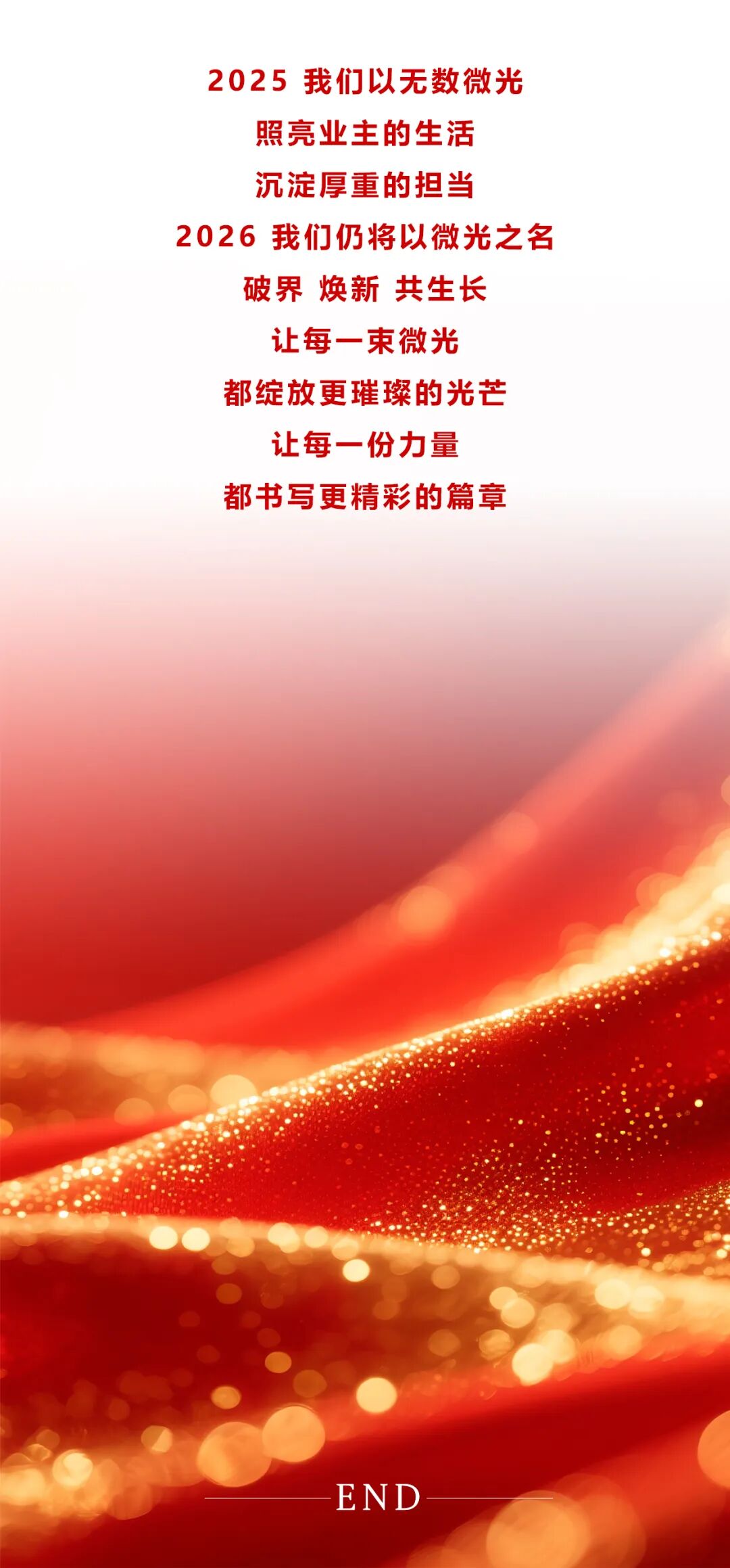 2026年,全体银丰物业人将继续以“破界”的勇气突破局限,以“焕新”的智慧驱动升级,以“共生长”的信念凝聚力量。持续深耕服务品质,拓展业务版图,深化科技赋能,构建多方共赢的生态体系,努力打造更具影响力的物业品牌。相信在全体成员的共同努力下,银丰物业必将在行业变革中铸就新的荣耀与辉煌!