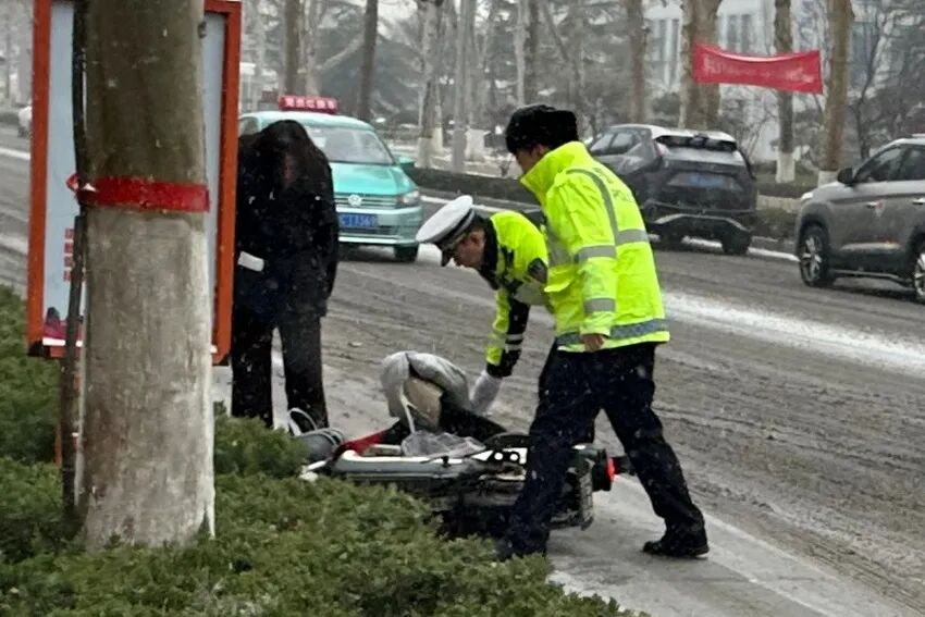 无独有偶,县城派出所、经济开发区派出所民辅警在巡逻时发现,有群众因道路湿滑骑车不慎摔倒。民辅警及时救助,群众表示感谢。