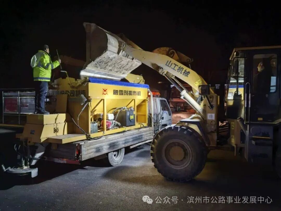 1月18日,滨州市出现降雪冰冻天气,市公路事业发展中心以雪为令,立即启动除雪防滑应急预案,第一时间出动养护人员和除雪机械设备上路开展除雪作业,并在重点路段、急弯陡坡、平交道口、易打滑路段撒布融雪剂。滨州公路人全力奋战,保障普通国省道安全畅通,守护公众出行。