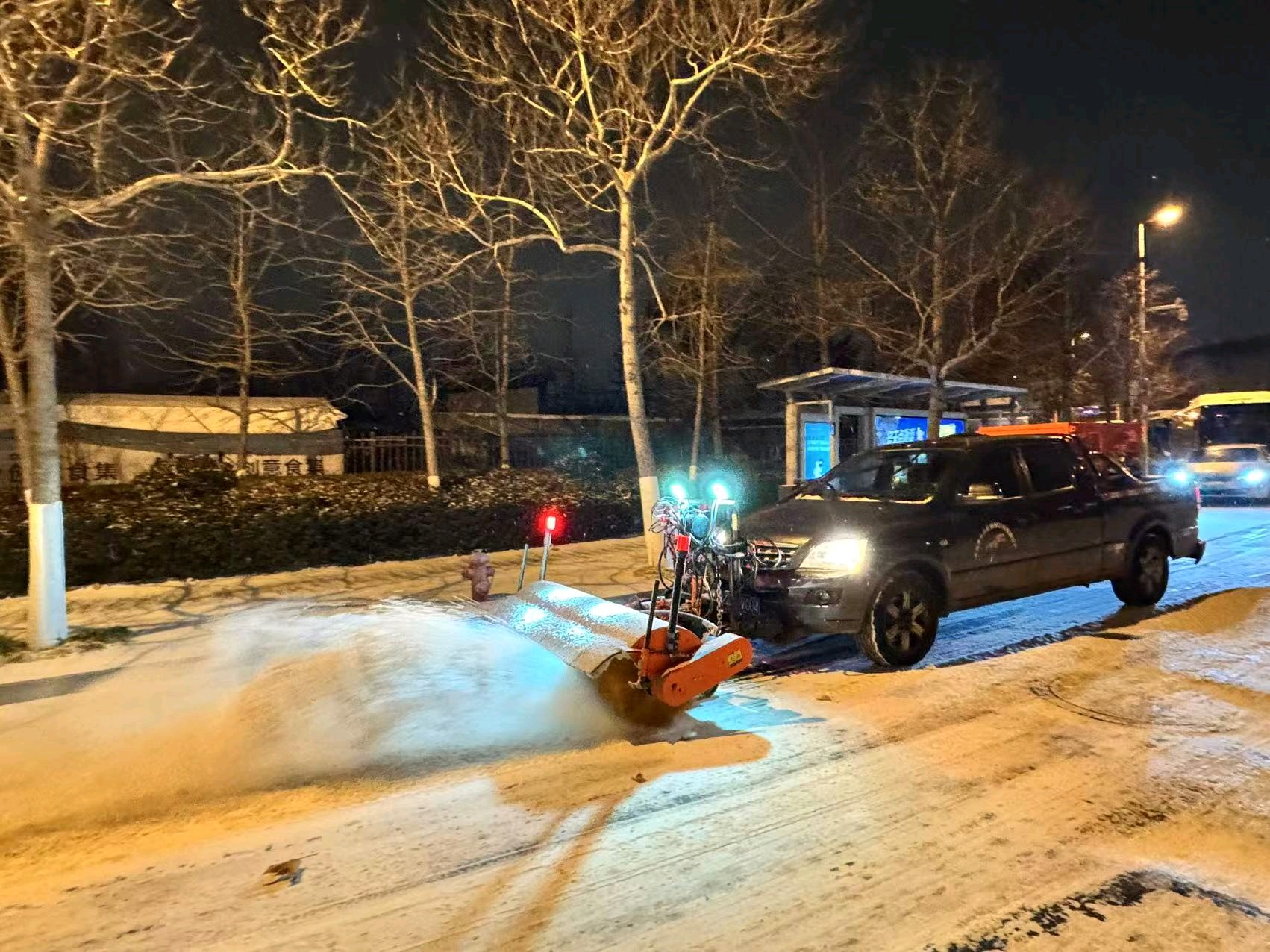 并且,针对关键路段精准撒布环保融雪剂,人工清扫则聚焦机械覆盖不到的人行道、路口转角,手持工具细致铲除残冰积雪。全力守护道路安全畅通,保障市民群众出行安全。