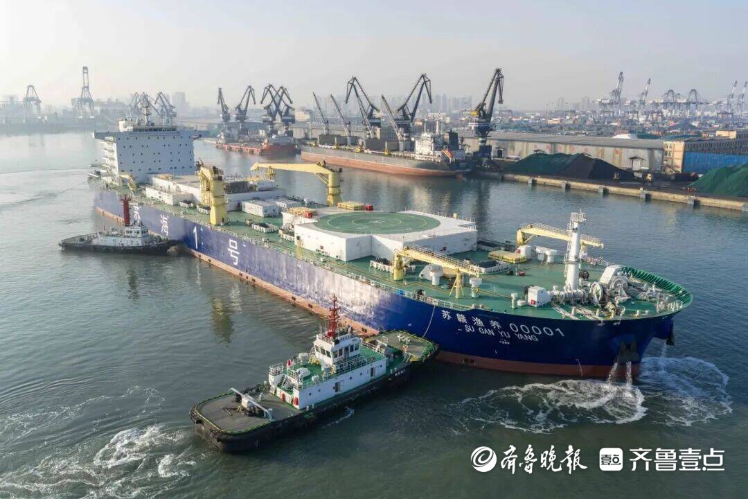 从陆地沿海到大洋深处,三文鱼的陆海接力养殖,既为其营造了更适宜的生长环境、孕育出更鲜美的品质,更打破了近岸养殖的空间和产量限制,让海洋成为名副其实的“蓝色粮仓”。“苏海1号”全长249.8米,养殖水体达8.3万立方米,搭载15个封闭式养殖舱,通过全船智控系统实现水体、供氧、饲喂的精准调控,24小时内可完成16次水体交换,为三文鱼创造低应激、高标准的生长环境,达产后单艘工船可年产三文鱼6000吨,年产值约5亿元。预计2026年上半年实现首批成品上市,让国产三文鱼的“深海味道”走上国民餐桌。