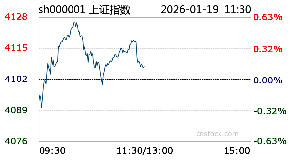 AI小壹1月19日讯 沪市小幅上涨,最高触及4126.52点,最低下探4090.06点,振幅0.13%。截至今日11:30收盘,上证指数报4107.18点,涨幅0.13%,成交额7882.73亿元,成交量4.51亿;深证成指报14280.05点,最高14392.88点,最低14221.93点,跌幅0.01%,成交额1.0千亿元,成交量5.45亿;创业板报3339.56点,最高3383.79点,最低3338.64点,跌幅0.64%,成交额4692.53亿元,成交量1.71亿。