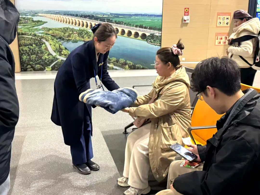 机场在全力除冰雪的同时,统筹做好旅客服务保障工作。提前在值机、候机区域增派流动服务人员,加强引导咨询和秩序维护,及时响应旅客需求。候机楼内温度实时监测,防寒物资准备充足,延误保障机制全面激活,致力于在恶劣天气下为旅客提供细致、温暖的出行体验。目前候机楼内秩序良好,旅客出行平稳有序。