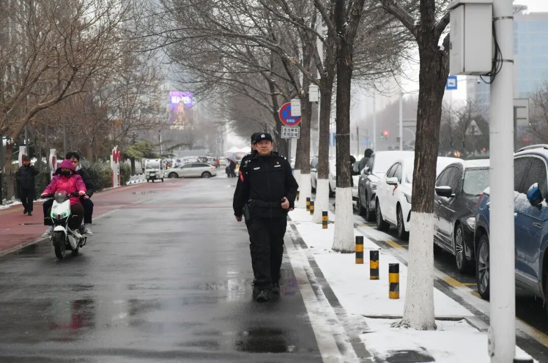 风雪之中,民警的身影成为暖心的风景,用热血使命和忠诚担当为这座城市送上最暖的守护。