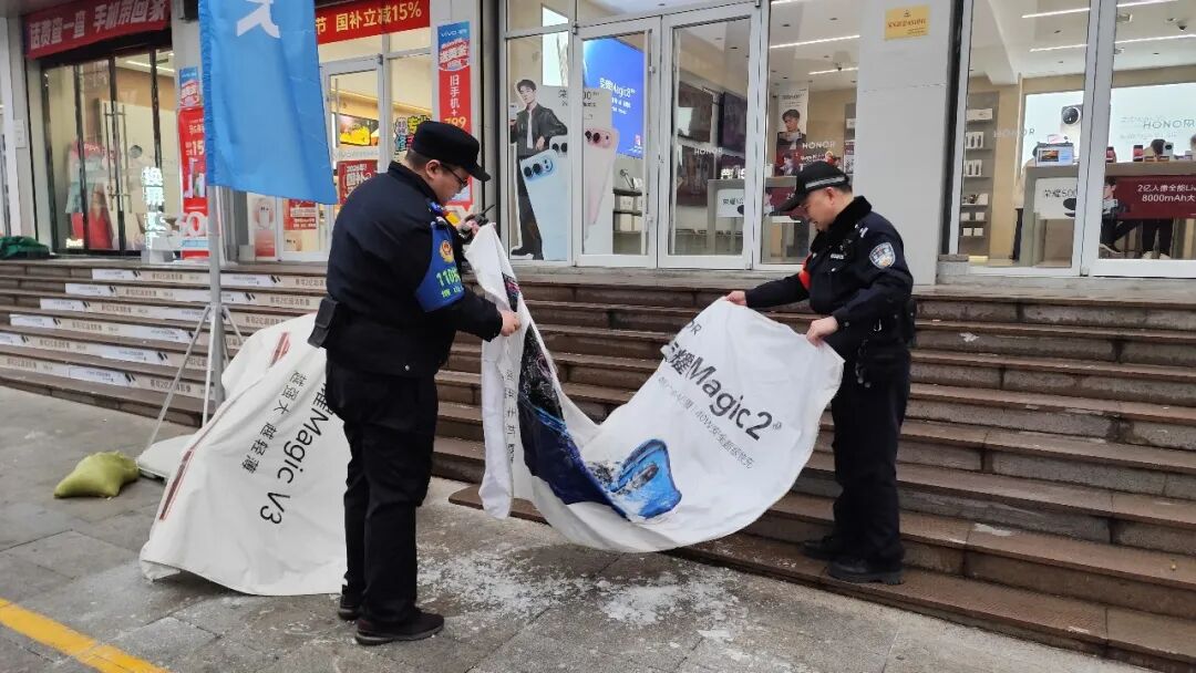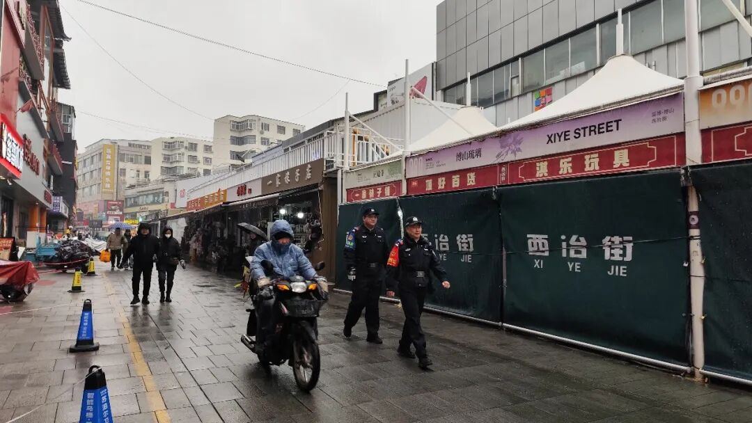 博山分局中心派出所民警在西冶街开展徒步巡逻,其间主动延伸服务,帮助沿街商户收纳广告牌,并在湿滑台阶处铺设防滑垫,及时消除安全隐患。