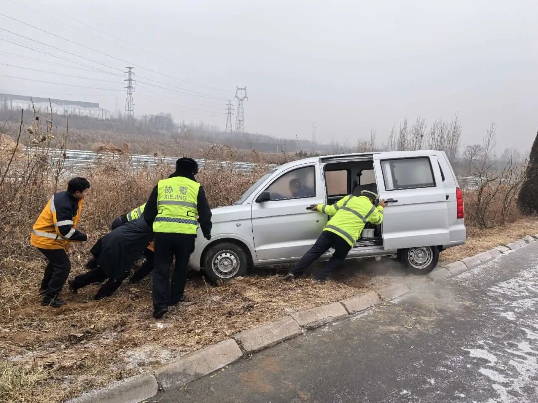 1月18日,淄博交管部门积极应对雨雪恶劣天气保障道路安全。博山交管大队源泉中队巡逻至省道317岱庄村路段时,成功将因路面湿滑冲入排水沟的面包车推出,车内人员安然无恙;桓台县公安局交管大队则启动应急预案,增派警力加强主干道、国道路段及易结冰涵洞、跨线桥的巡逻管控,通过鸣警笛、融雪处置、视频巡查等举措保障通行,当日出动警力105人次、警车24辆,辖区交通秩序平稳有序。