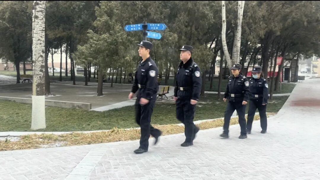 柳泉分局警力雪天在辖区西山公园、商超街道巡逻执勤。