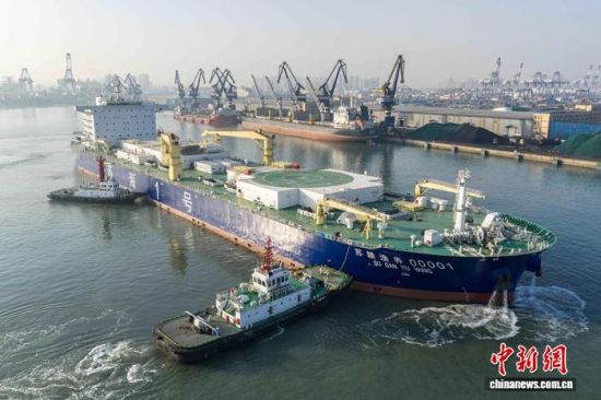 全球首艘10万吨级三文鱼养殖工船在烟台港开舱进货