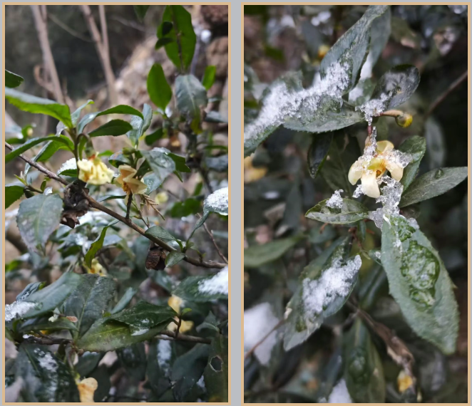 在低温寒潮冰冻天气预警后,具备条件的茶园,选择不下雨的天气,抓紧时间喷施植物防寒抗冻剂,提高茶树抗性。