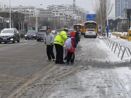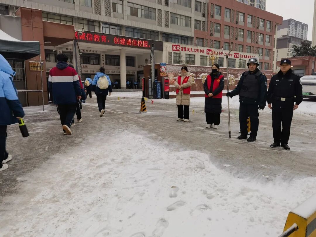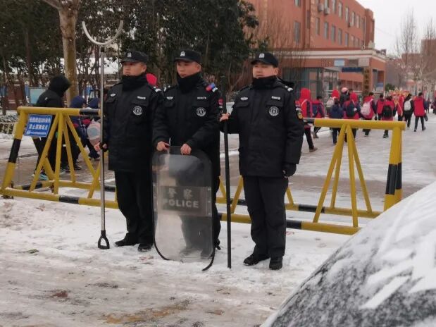 针对雪天上下学时段人车流集中、安全隐患增大的特点,巨野公安进一步强化“护学岗”勤务部署,抽调局机关民辅警联合交警、特巡警、派出所警力在每个学校门口站好“护学岗”。他们在车流中积极指挥疏导,通过手势引导和喊话提醒,规范送学车辆即停即走,有效避免了因车辆滞留造成的交通拥堵;另一方面,他们时刻关注着学生们的安全,主动穿梭于人行道与车流之间,耐心引导、护送学生们安全、快速地进入校园。他们的细致守护,为雪天中出行的师生们构筑起了一道温暖而坚实的安全屏障。