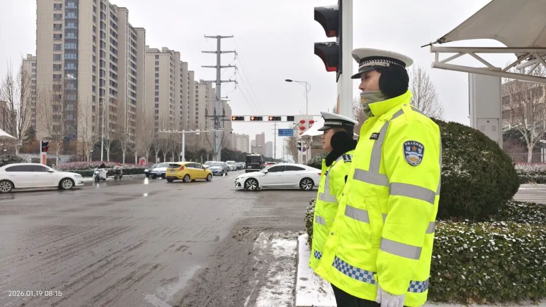 1月18日晚,巨野迎来2026年首场降雪,给群众出行带来诸多不便。为有效应对恶劣天气影响,全力保障群众出行安全与交通秩序平稳,巨野县公安局提前安排部署,迅速启动冰雪天气应急预案,全警动员,全力以赴,将警力最大限度投入路面,坚守“高峰岗”“护学岗”勤务,扎实做好交通疏导、治安防控、服务救助等工作,全力“保畅通”“护平安”。