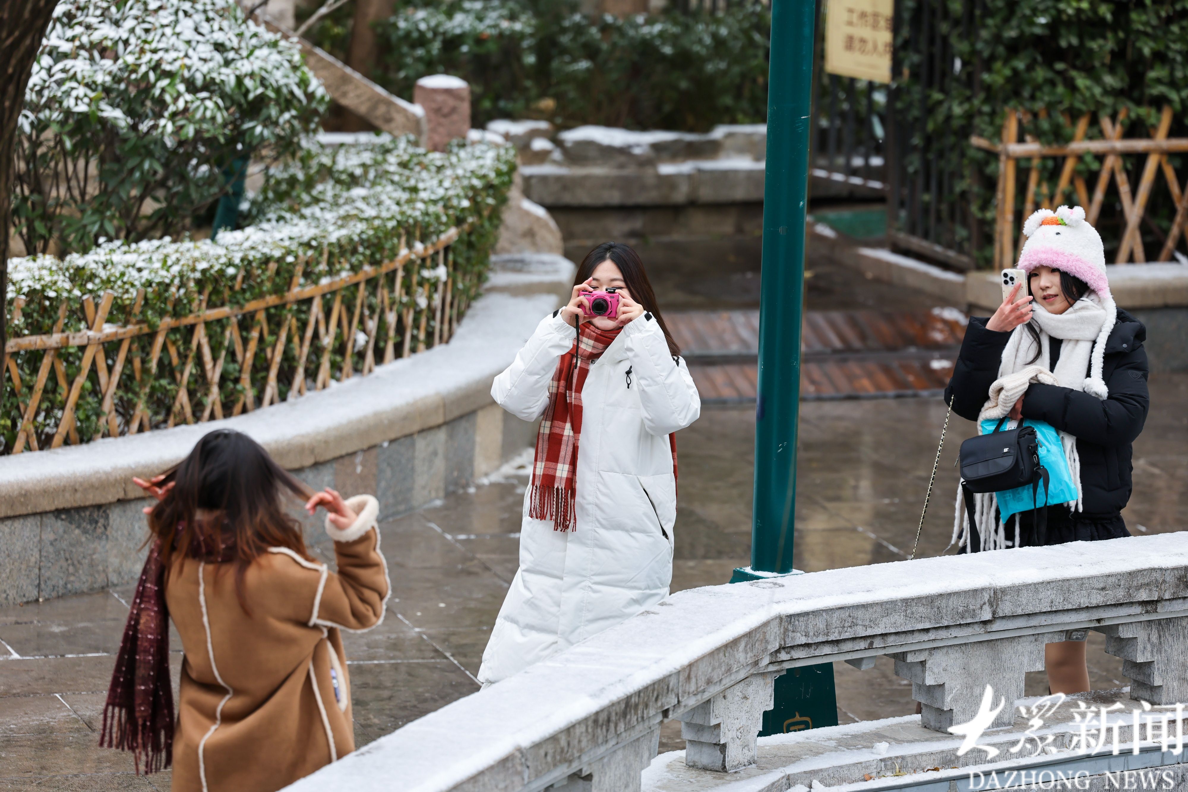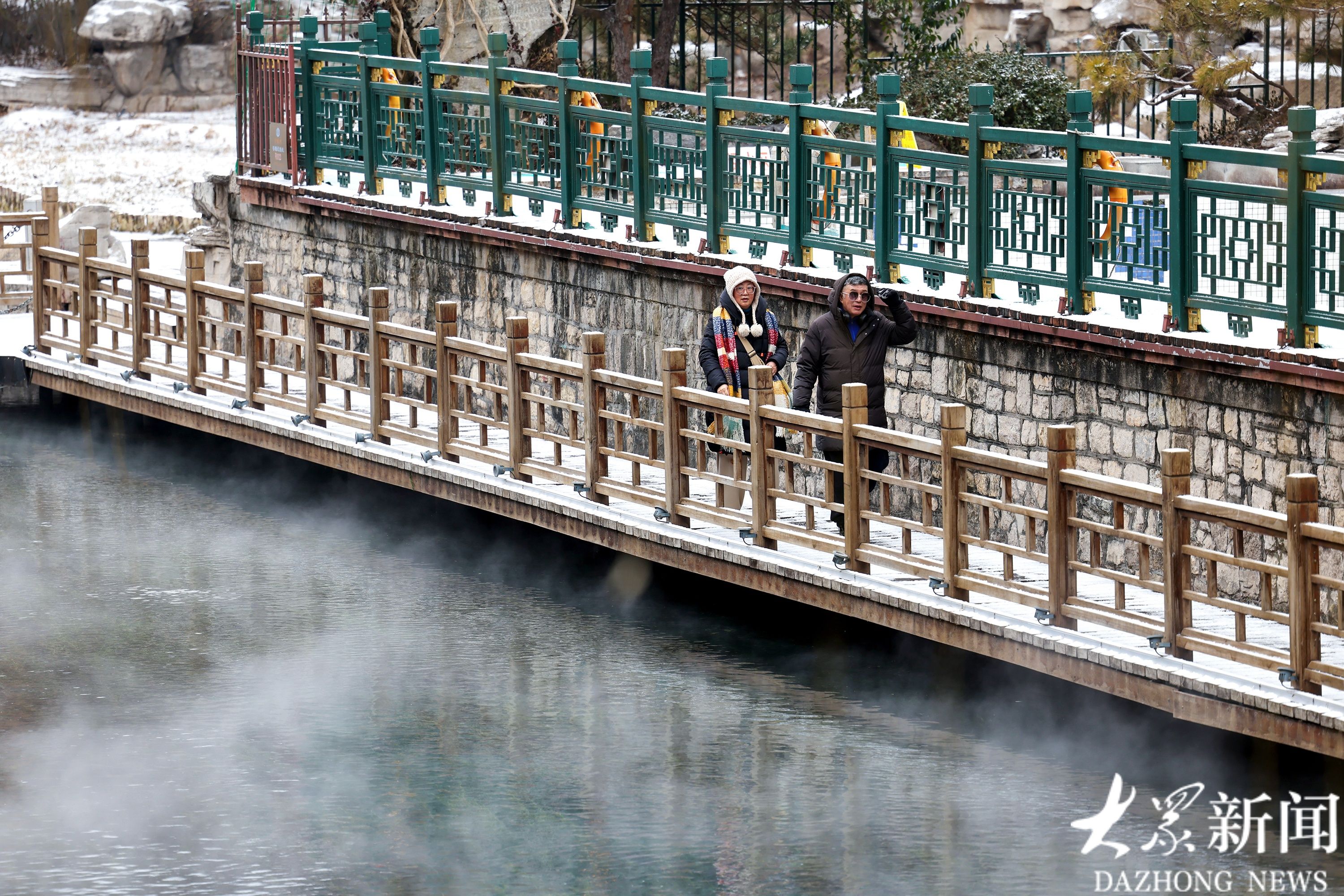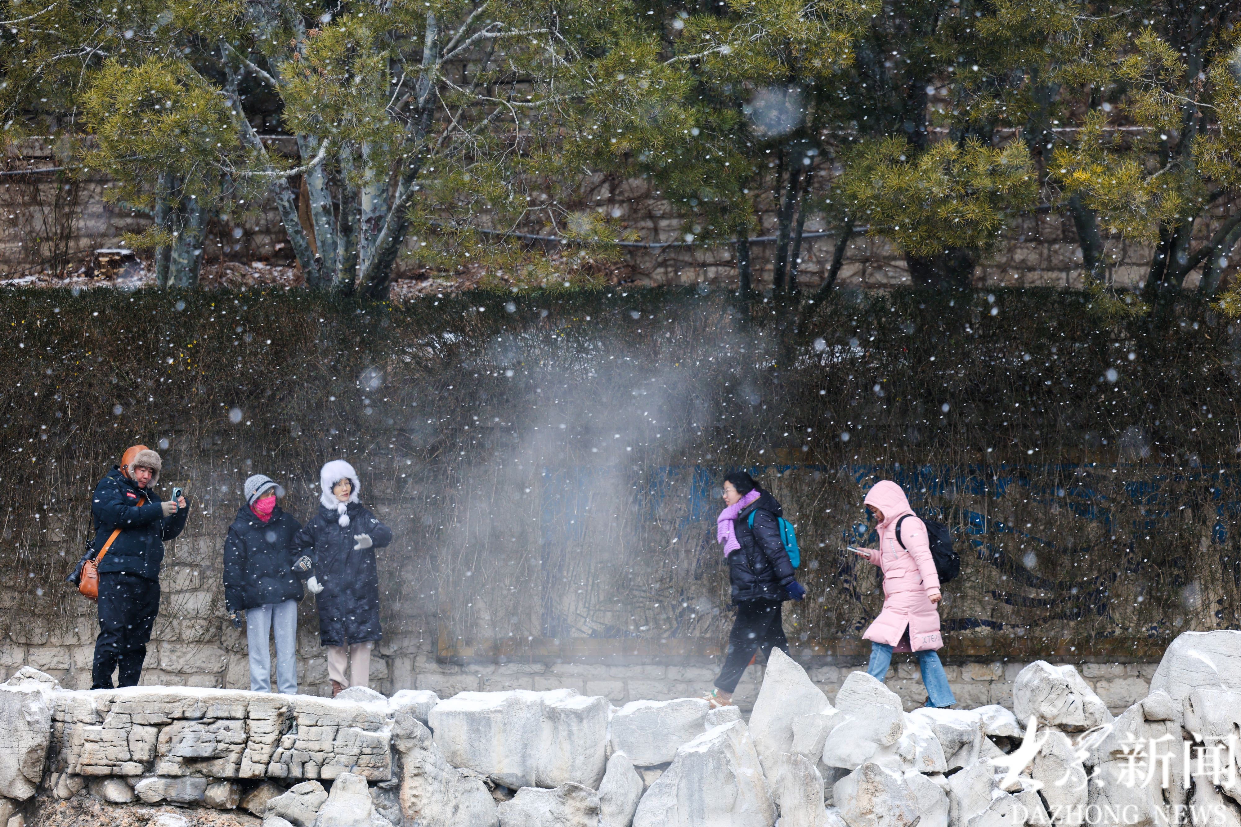 1月19日上午,济南历下区迎来降雪。片片雪花轻盈飘落,为古城济南的护城河披上一层素净银装,勾勒出一幅诗意盎然的冬日画卷。雪花纷飞间,护城河两岸草木皆白,河面水汽氤氲升腾,与漫天飞雪交织相融,晕染出朦胧雅致的意境。漫步河畔,目之所及皆是银装素裹的景致,泉城独有的冬日韵味扑面而来,引得市民驻足观赏、拍照留念。(大众新闻记者任小杰)