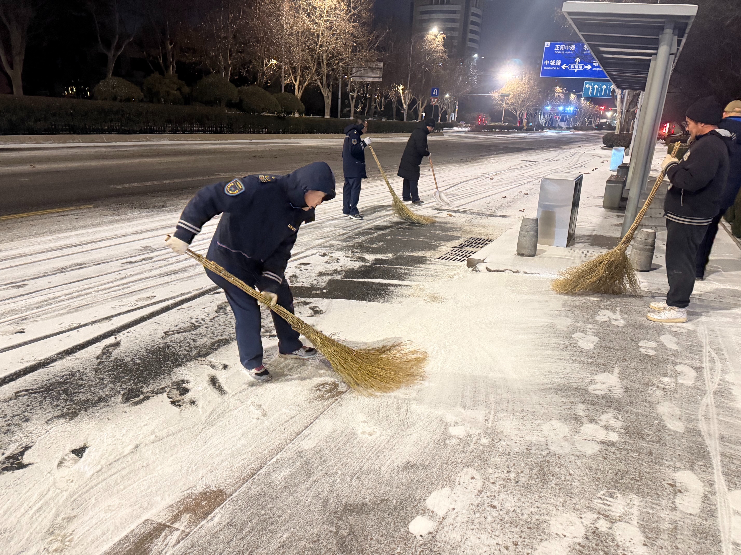 面对降雪预警,城运控股集团提前谋划、精准施策。各公交运营单位提前储备融雪剂120吨、防滑沙215.3 立方、防滑链条3454条及各类除雪工具4400余件,组建49支应急突击队,684名队员全员待命。1月18日降雪伊始,集团即刻启动恶劣天气应急预案,各运营单位按照“一线一策”方案,对全部运营线路开展全覆盖隐患排查,重点在易结冰路段、站点周边抛洒融雪剂、铺设防滑沙、清扫积雪。