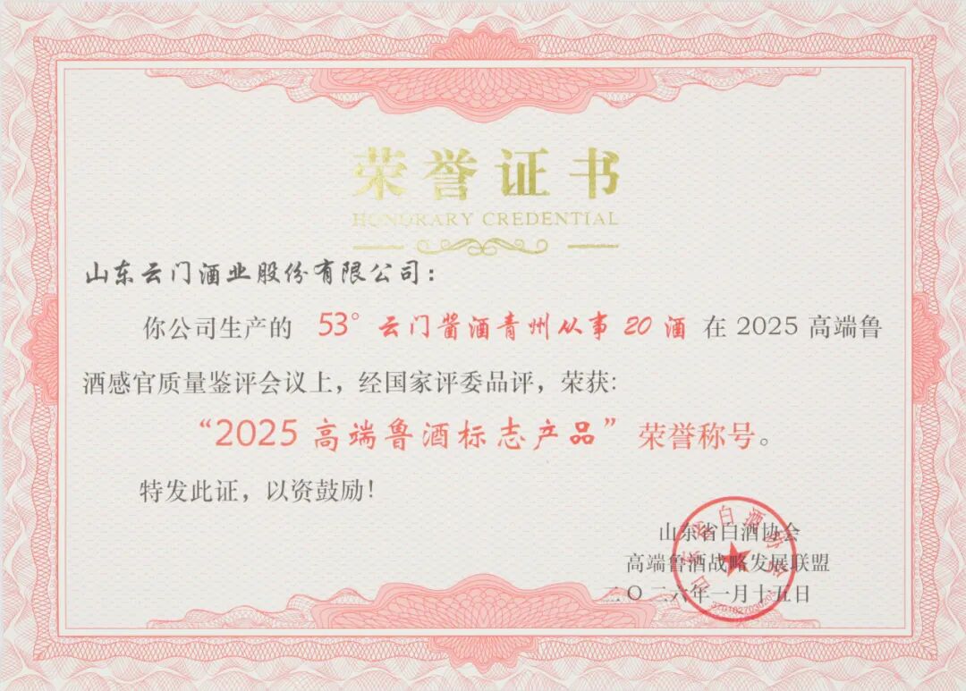 在备受瞩目的“2025高端鲁酒标志产品”颁奖仪式上,“云门酱酒·青州从事20”凭借良好的市场口碑与强劲的产品力,在激烈评选中脱颖而出,再获殊荣。