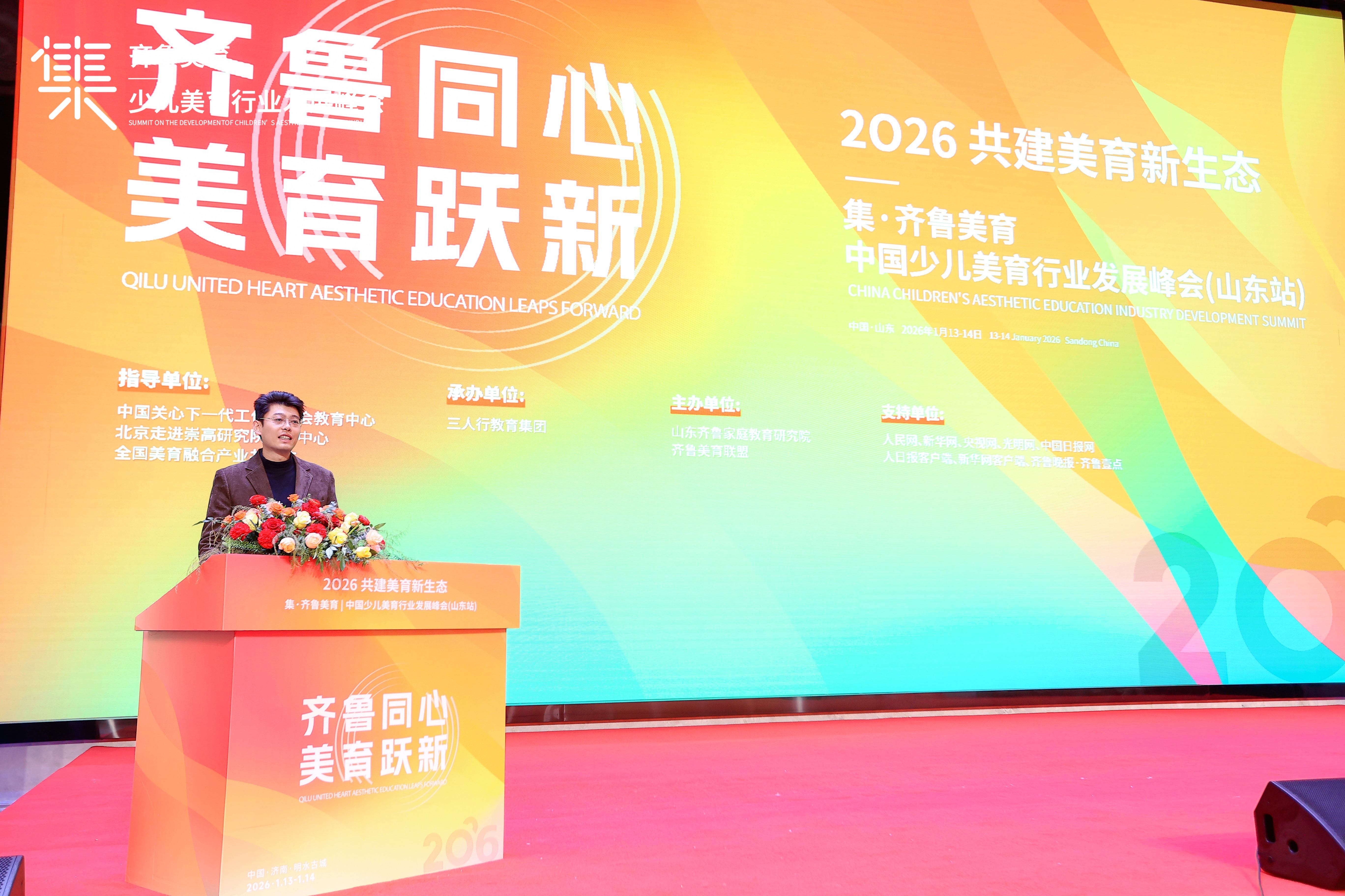 1月13日至14日,由齐鲁美育家庭研究院主办、三人行教育集团赞助的“集·齐鲁美育|中国少儿美育行业发展峰会(山东站)”在济南明水古城隆重举行。深冬的古城虽透着清润凉意,却因这场美育盛会暖意融融,全国美育领域精英齐聚一堂,共探行业发展新路径。