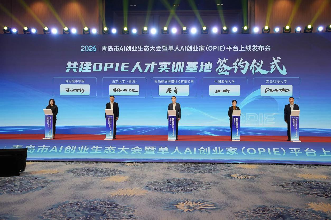 1月15日,2026年青岛市AI创业生态大会暨单人AI创业家(OPIE)平台上线发布会在青岛国际会议中心举行。会上,青岛城市学院与山东大学(青岛)、中国海洋大学、青岛科技大学及相关企业共同签署“共建OPIE人才实训基地”协议。这是继去年底落户全国首家“宇树科技产业学院”后,青岛城市学院在深化产教融合、赋能新质生产力领域的又一重磅落子。