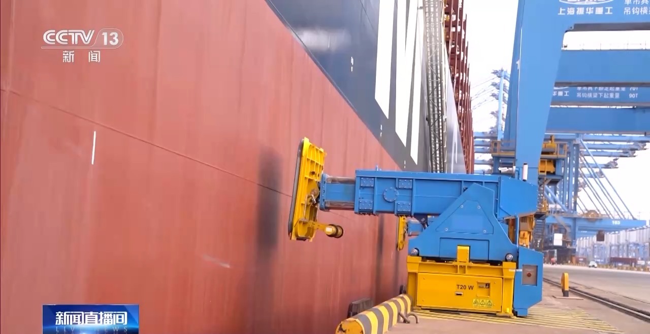 工作人员介绍,这一套系统让传统方式的30分钟的作业时间缩短到30秒。可别小看这30秒的时间,预计全年可缩短靠泊时间超200小时,相当于一个泊位全年新增10余条船的作业产能。