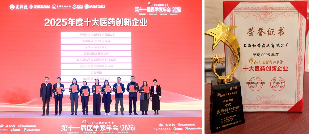 上海和黄药业有限公司在此次年会上荣获“2025年度十大医药创新企业”称号。该奖项旨在表彰其在中医药领域的系统性创新成果,特别是在推动中药现代化与国际化方面的积极探索。