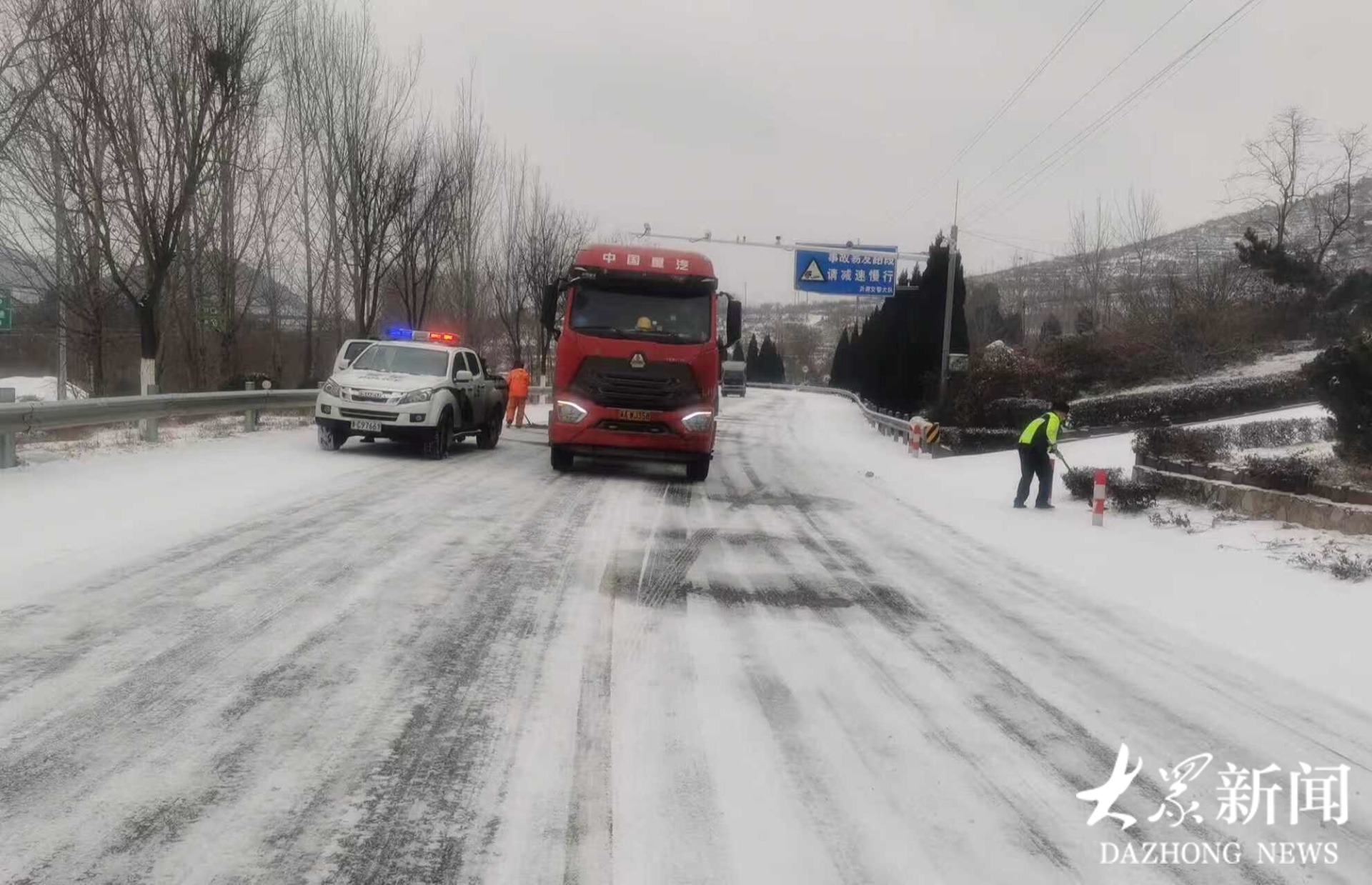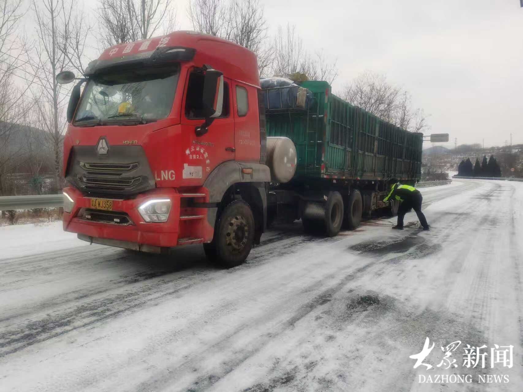 危急时刻,正在此处执勤的沂源县公安局交管大队悦庄中队辅警李洋、徐志涛立即拿起铁锨从打滑车辆左右两侧向轮胎底下撒沙,从而加大轮胎与地面的摩擦力,使车辆迅速脱困。