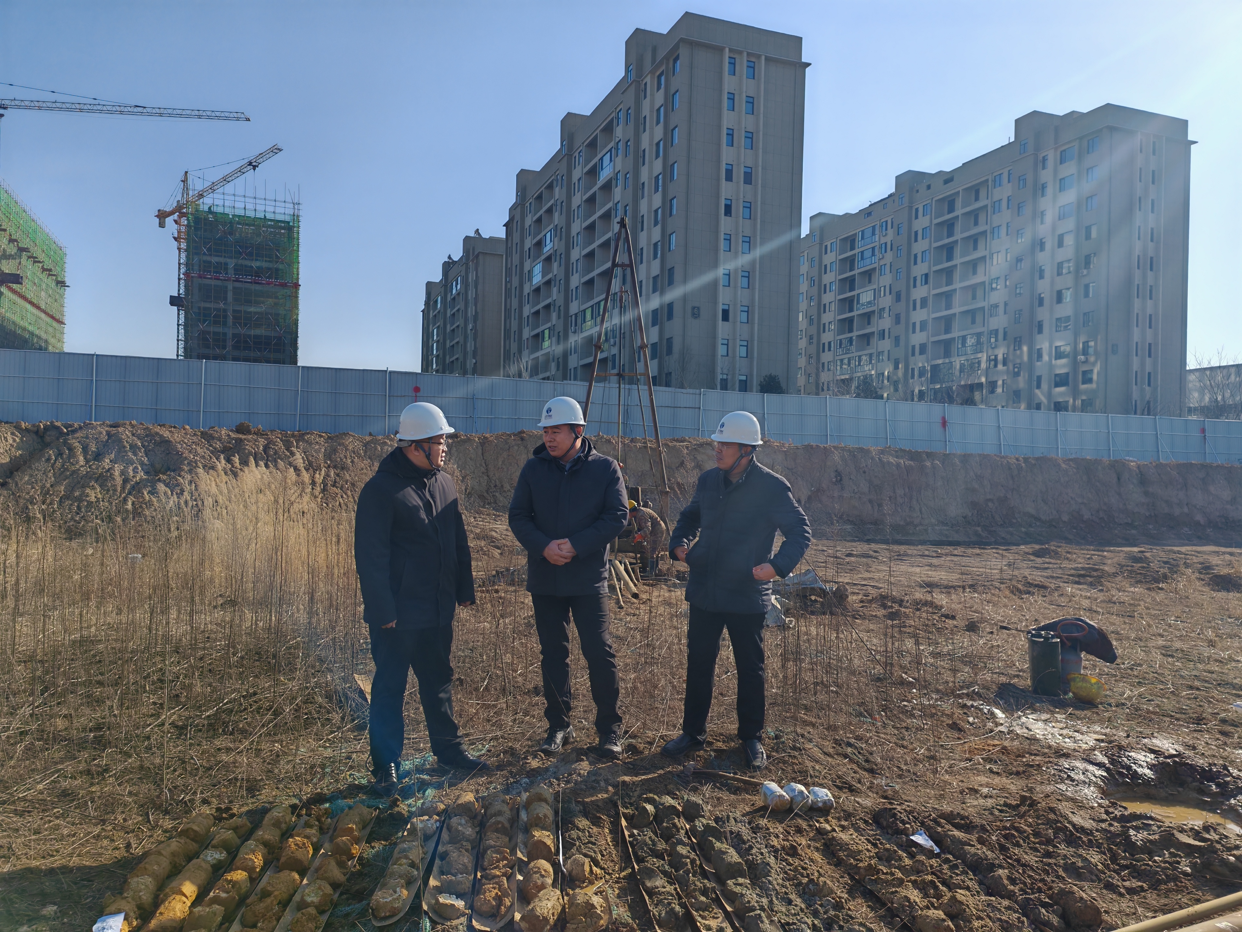1月12日,山东省地矿局五队党委委员、副队长代正兵带队到泰安市学府春天珑玺园勘察项目调研。
