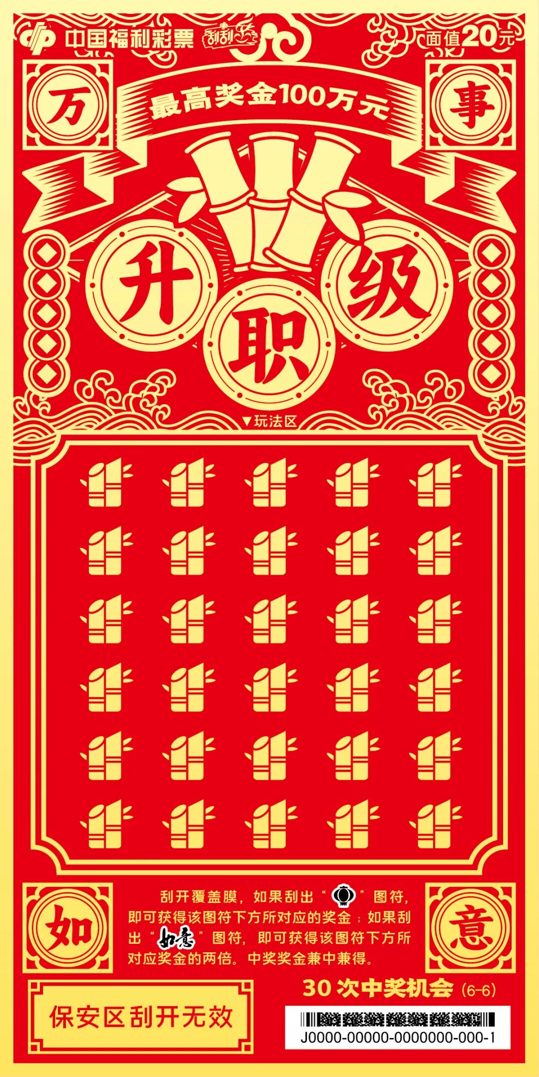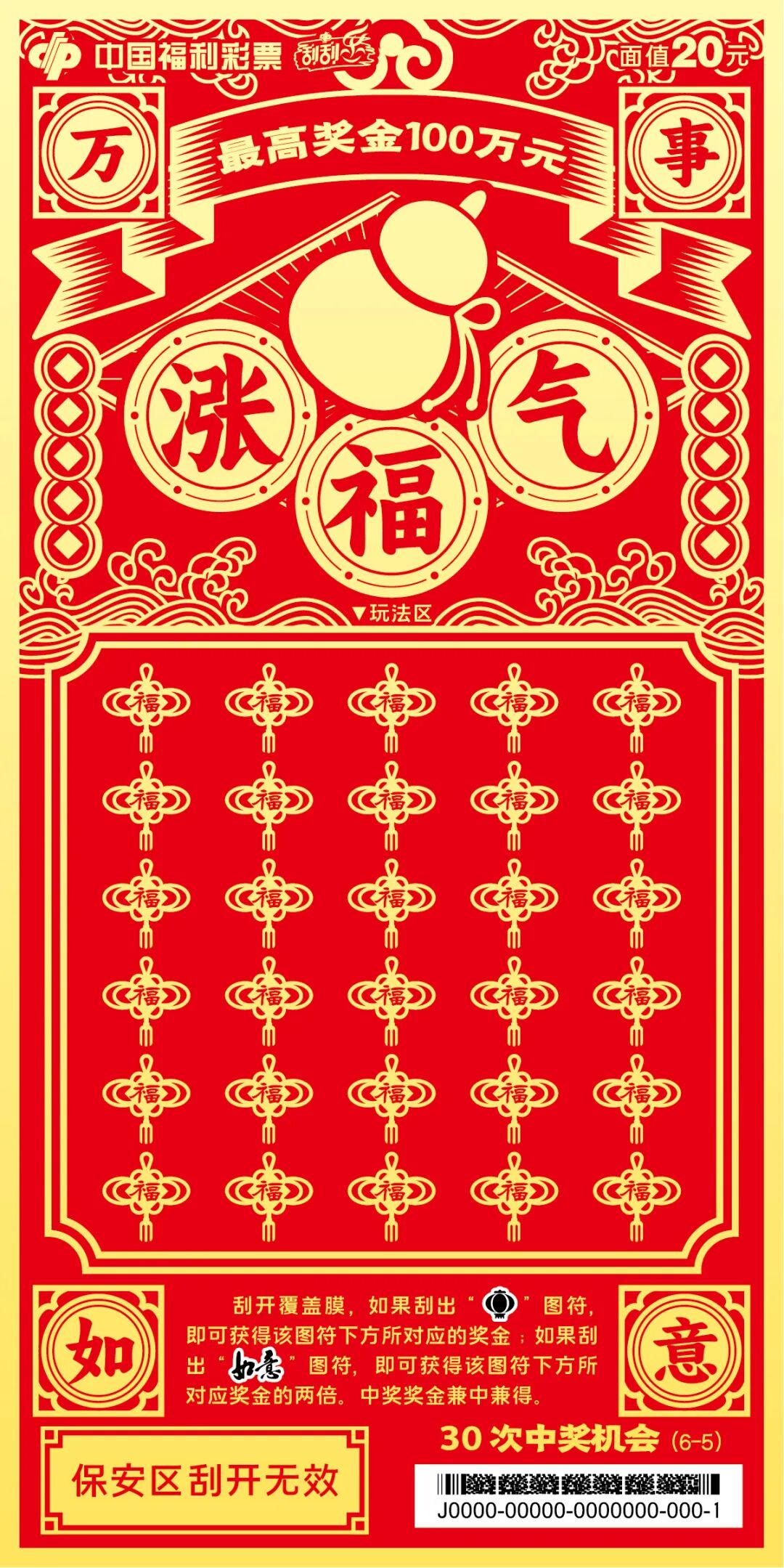 红色是希望,是热烈,是生活事业家庭红红火火的底色。这套彩票将“走财运”“降祥瑞”“添如意”“旺桃花”“涨福气”“升职级”的贴心祝福融于票面,为家人朋友送上最实在的关怀,祈愿让事事顺遂、万事如意成为触手可及的日常。