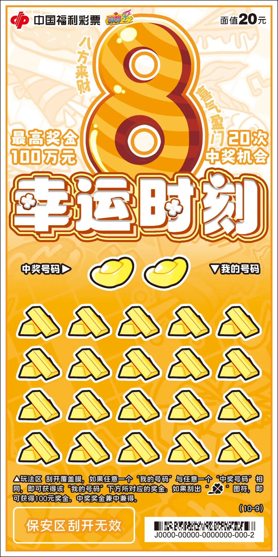 祝您身体健康,平平安安。刮刮乐“喜”蕴含着无尽的福泽与祈愿;票面上的寿桃、祥云等传统吉祥图案,寓意着幸福美满和福气降临……将最真心的福运送给您最爱的人,愿健康常伴,平安永驻。