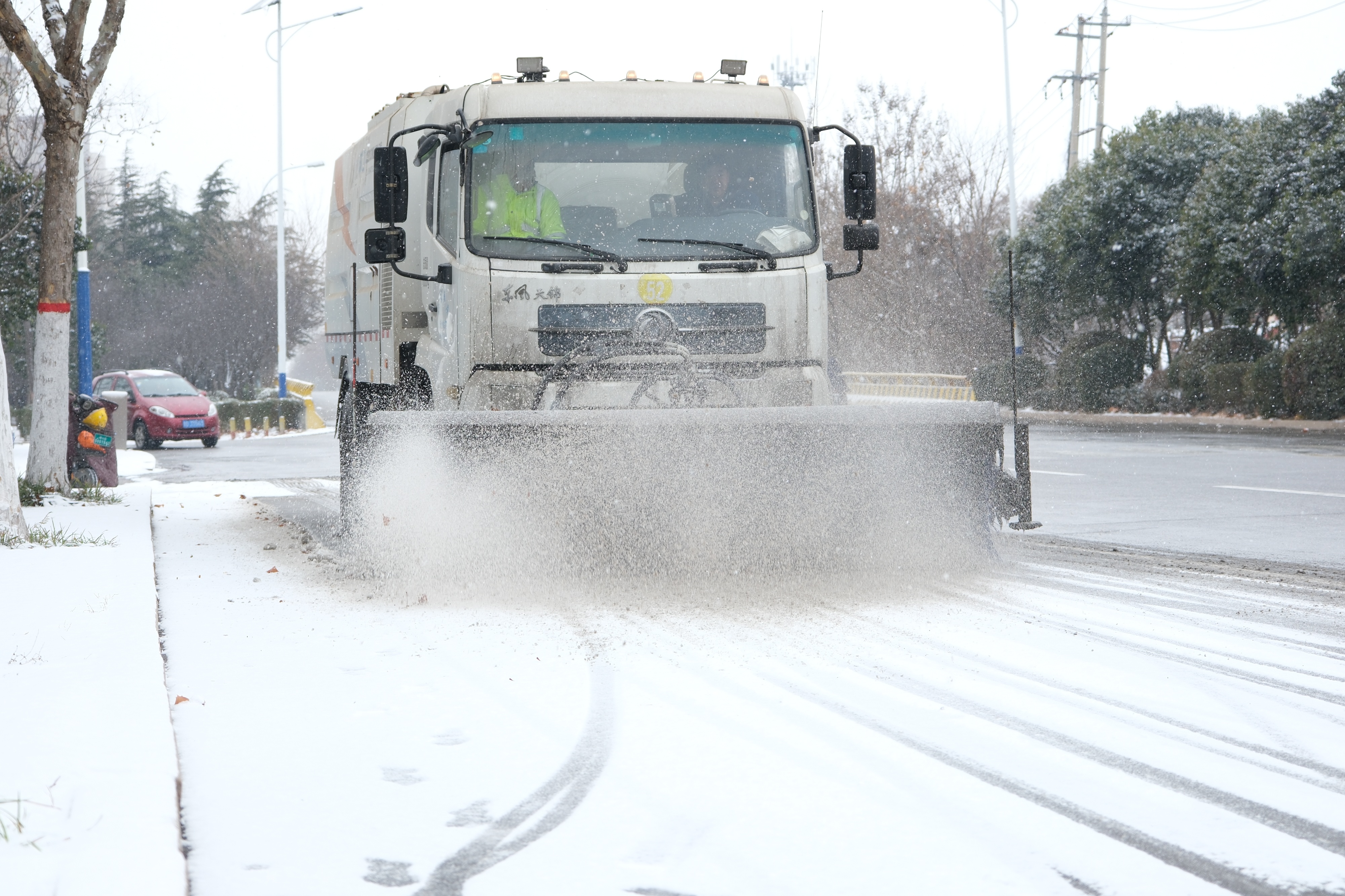 18日夜间至19日,枣庄市市中区迎来降雪天气,市中区城市管理系统闻雪而动、以雪为令,迅速启动应急预案,全员投入清雪保畅一线。区环卫中心出动大型滚雪刷、除雪铲、融雪剂撒布车等机械化作业车辆,重点对城区主次干道、立交桥、桥梁坡面、陡坡路口等易积雪结冰点位开展高效清雪作业。城管执法队员、市政及园林应急队伍同步上路巡查,协助抛洒融雪剂,清理树枝积雪,及时处置突发情况。全体人员顶风冒雪、连续奋战,实行“人歇机不停”24小时轮动作业模式,全力保障道路通行顺畅。