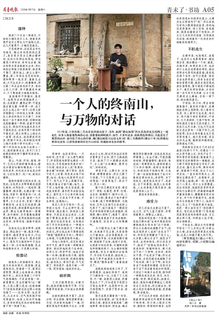书摘|张二冬《借山十年》:一个人的终南山,与万物的对话