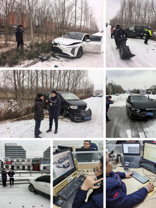 菏泽理赔中心启动“全员在岗、温暖服务、精密分工”预案,梳理高风险客户清单,通过客户群推送安全提示,累计处理雨雪相关案件700余起。