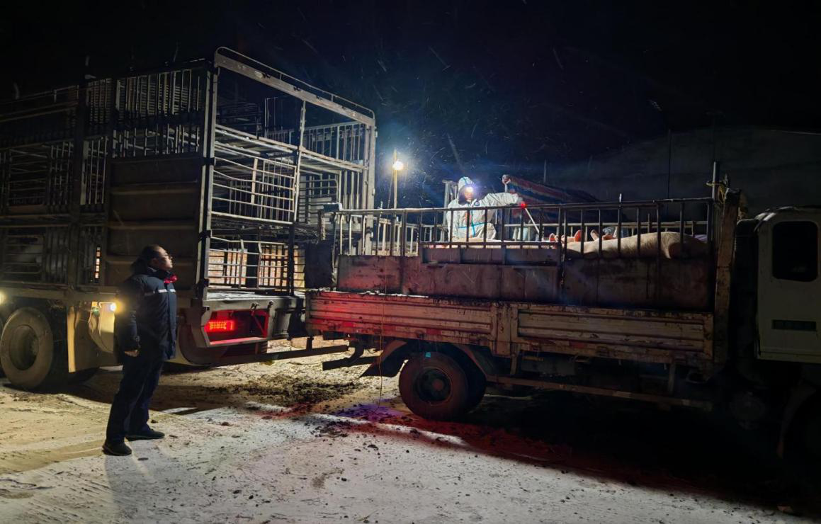 济宁查勘员从深夜到凌晨连续奋战,手套、衣物被雪水浸透仍坚守岗位,寒夜中还为承保育肥生猪价格指数保险的养殖户提供现场点数核验服务,全力保障生猪出栏顺利推进,以实际行动践行“有温度的人民保险”承诺。