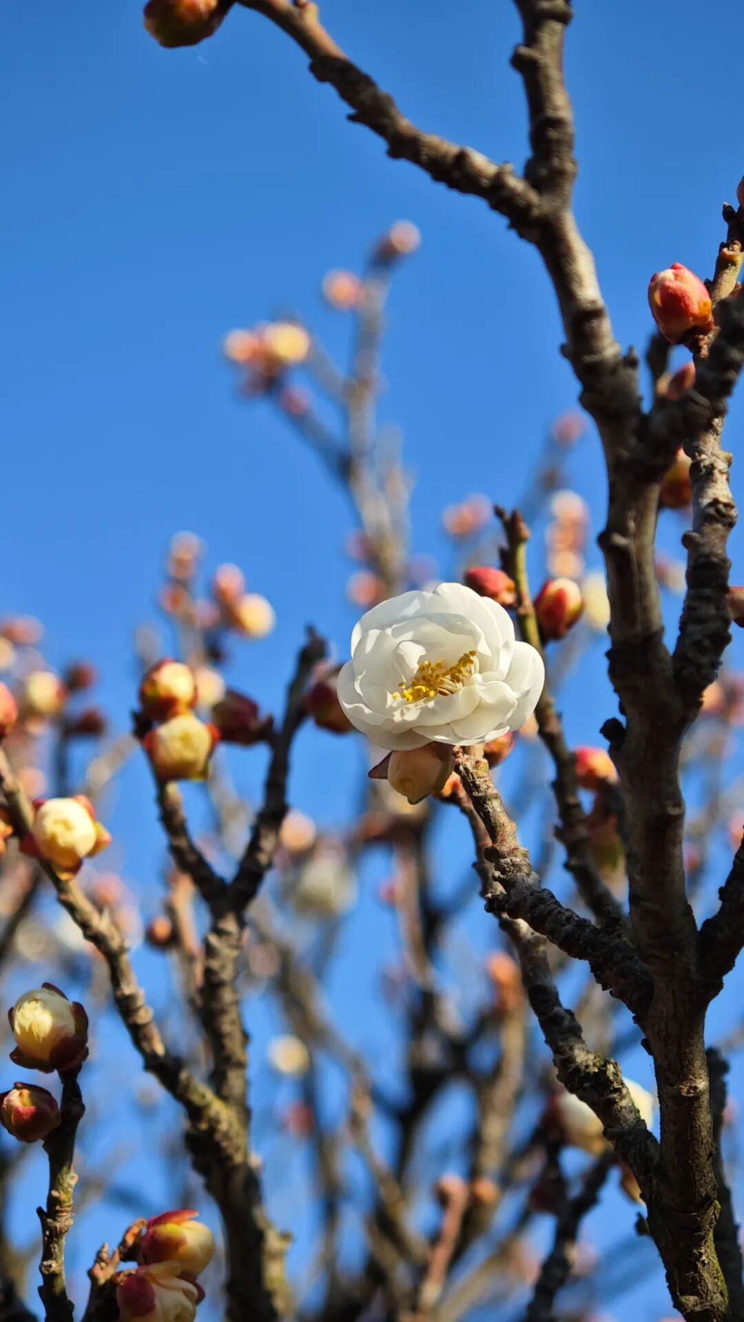 日照银河公园东南面的梅园迎来初绽