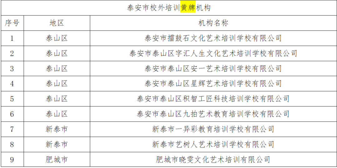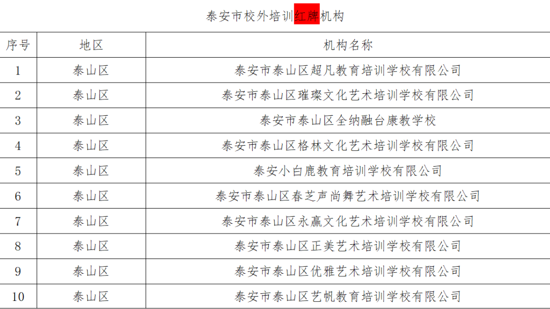 根据《泰安市教育局关于开展校外培训机构预收费专项监管工作的实施方案》要求,各县(市、区)教育部门开展了2025年第四季度专项抽查,陆续发布“绿黄红”三色名单,此次共抽查机构207家,认定绿牌机构159家,黄牌机构17家,红牌机构31家。按照方案要求,黄牌培训机构应在限期内完成整改,整改完成后经由县级教育部门检查确认整改落实到位,撤销其黄牌;红牌培训机构应立即停业整顿,并在1个月内完成问题整改,整改完成后由县级教育部门检查审核并同意,撤销其红牌后,方可继续开展培训活动。请以下“黄红”机构,积极查找自身不足,按照上述要求迅速整改落实。各县(市、区)教育行政部门要加大对“黄红”机构的监管和指导,确保整改工作落实到位,引导机构规范发展。欢迎社会各界监督举报违规校外培训行为,有相关线索可以扫描下方山东“双减”举报随手拍二维码举报,我们将依法依规查处。