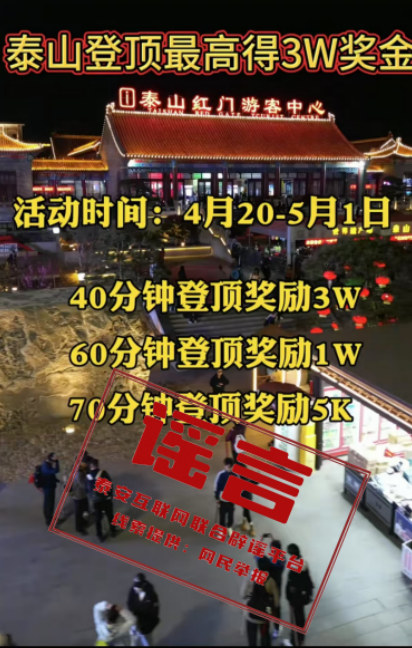 案例二:辟除“登顶泰山最高可得3万奖金”谣言