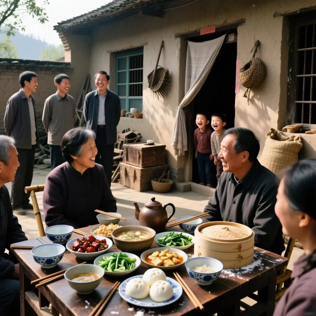 辣椒必得现摘,这差事常落在我头上,而我总是欢天喜地。一路蹦跳着来回,一来我喜欢在密密的辣椒棵里寻找熟透的果子,那种发现与摘取的喜悦,指尖触及辣椒蒂的触感,都让我兴奋;二来我也爱闻菜园里泥土的气息、各种蔬菜的清芬。红薯粉条简单处理便好。母亲准备这些时,总是不慌不忙,有条有理,每样都洗得干干净净,收拾得妥妥帖帖。母亲抽烟,有时忙到一半会歇口气,点上一支,神态悠闲,也常因此我家开饭总比别家晚些。