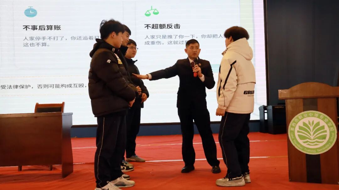 “当同学对你拳打脚踢时,能不能还手?”在模拟“校园冲突正当防卫”场景后,张波抛出关键问题,引发全场热议。随后结合新《中华人民共和国治安管理处罚法》第十九条和第五十一条,明确“法不向不法让步”:被侵害时可以实施正当防卫,但必须守住“不主动挑事、不事后算账、不超额反击”三个底线,避免从“受害者”变成“违法者”。台上同学的生动演绎,台下张波结合湛江案例的延伸提醒,让原本抽象的“正当防卫”概念变得清晰易懂。