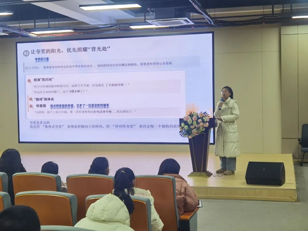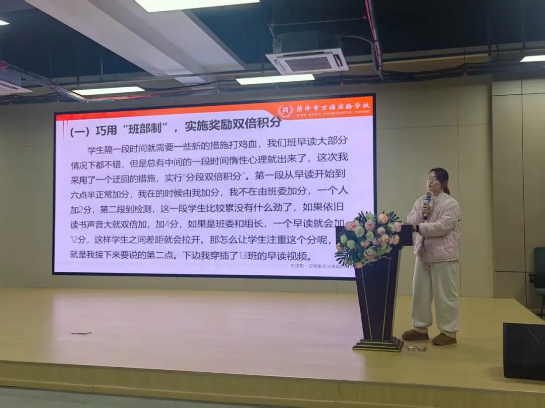 导师代表分享结束后,学校副校长陈连君作总结讲话。他指出,从小学部低段到高三年级,从习惯养成到学业冲刺,老师们深耕班级管理,各展所长、各显智慧。他强调,教育是一场温暖的修行,更是一份沉甸甸的使命,同时勉励全体教师继续以爱为基、以智为翼,让制度有温度、陪伴有力量、成长有光芒,让万福校园成为每个孩子逐梦的舞台,让教育之花在坚守与创新中绚烂绽放,共赴教育事业的美好新征程。