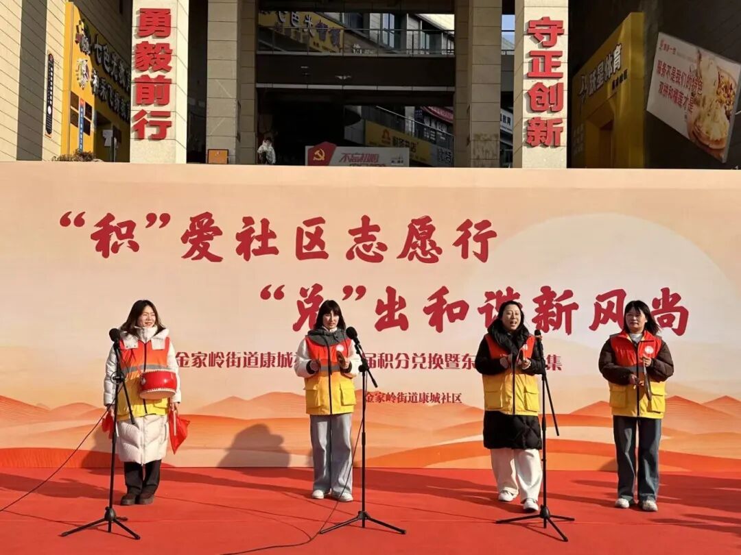 在康城社区2025年志愿者积分兑换活动现场,一场别开生面的“三句半”拉开了温暖序幕。四位来自新时代文明实践站的志愿者,巧妙地将《崂记文明》所倡导的行为规范与崂山本地方言、鲜活俚语相结合,编成朗朗上口、幽默风趣的台词。他们生动活泼的表演,引得现场笑声与掌声不断,为冬日活动注入了欢快的暖流。