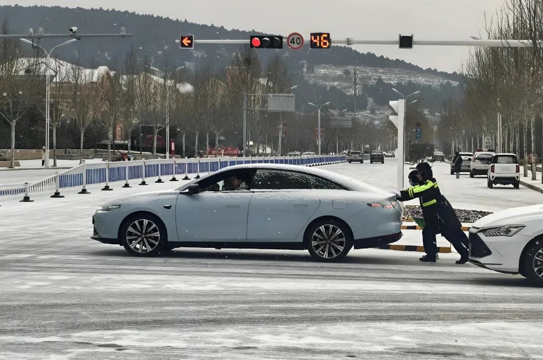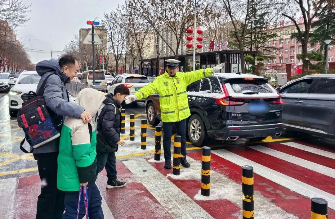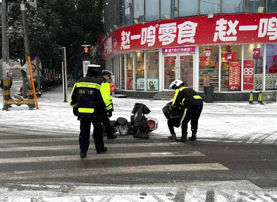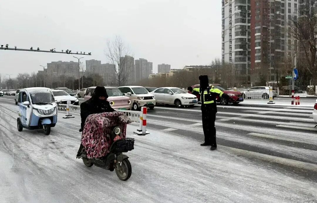 降雪导致路面湿滑、能见度下降,交通通行压力陡增。全市公安机关最大限度将警力、装备投向路面,科学采取限速、控距、控流及临时管制等措施,全力保障群众出行安全。