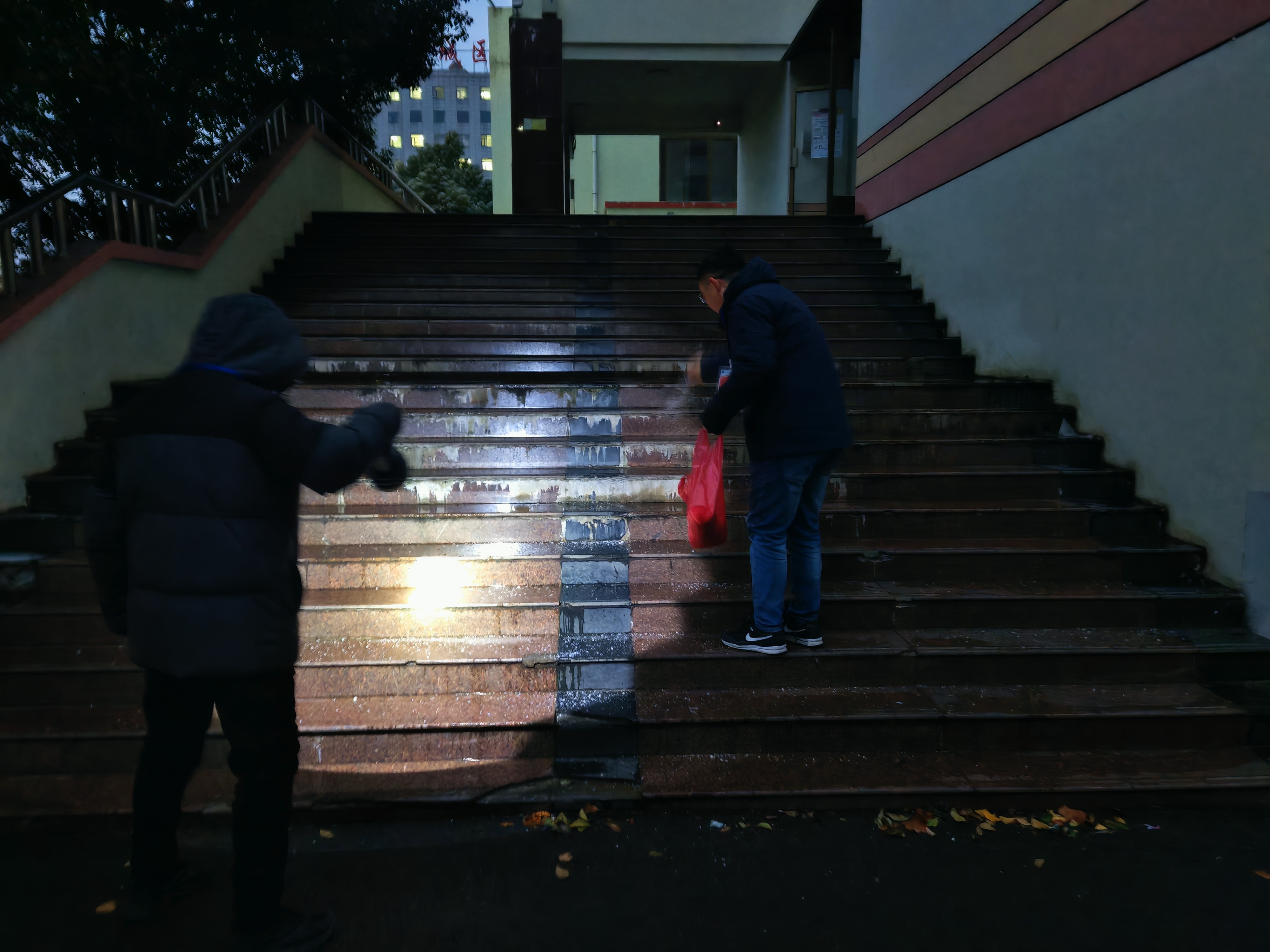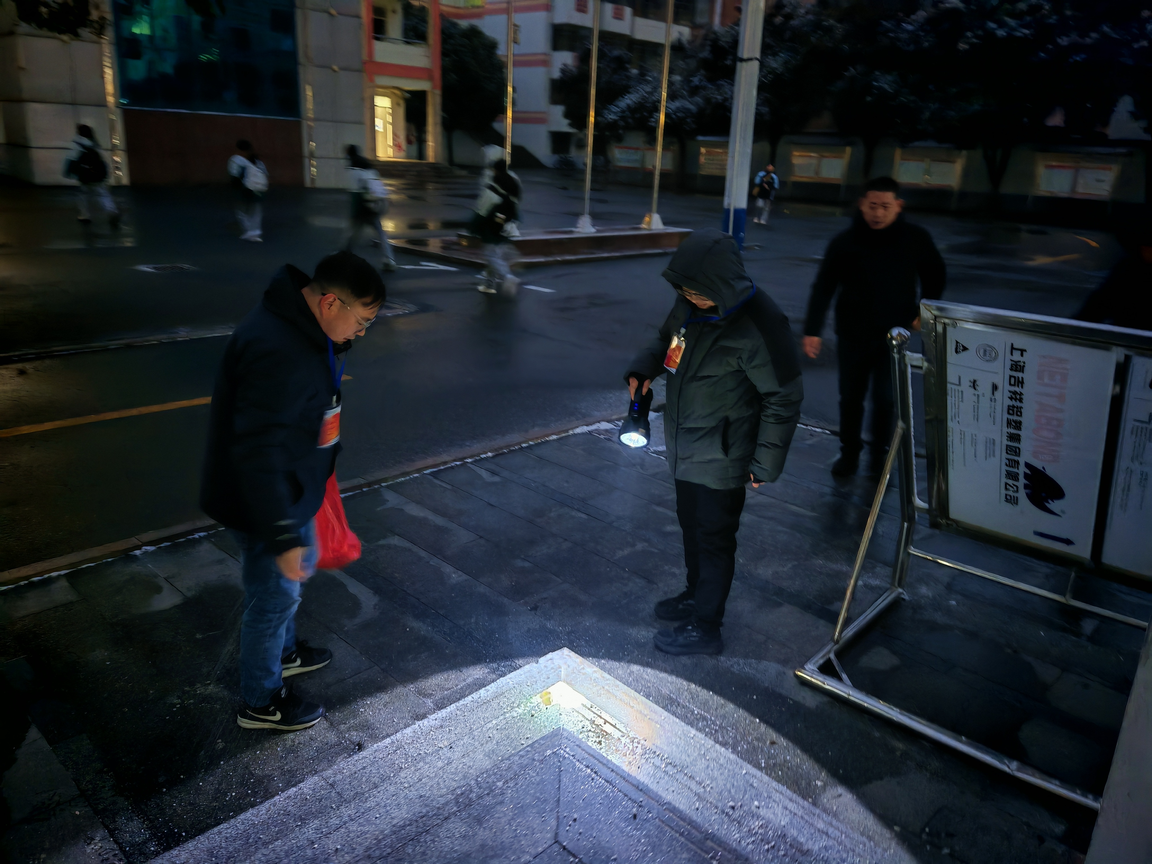 天未亮,联合工作组已全员到岗,按照分工开展专项行动。总务部门牵头对校园主干道、教学楼出入口、楼梯台阶等易滑区域,铺设防滑垫、撒盐,并用铁锹、扫帚清理积雪积冰,确保“雪停路净、冰消畅通”;安管人员和值班人员加大巡逻频次,重点排查校舍屋顶、外墙悬挂物及消防设施安全,严防意外发生。