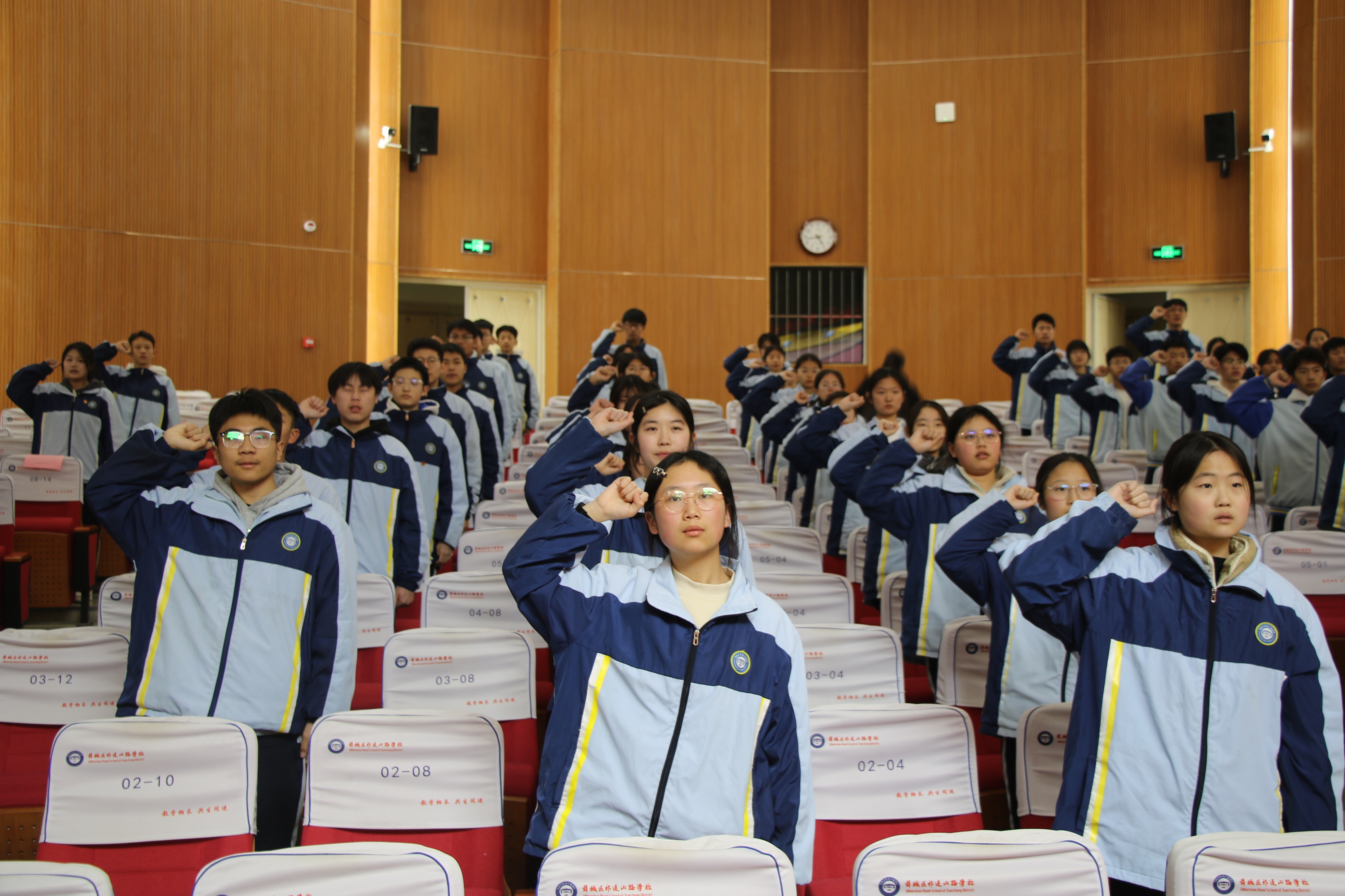 “我志愿加入中国共产主义青年团,坚决拥护中国共产党的领导……”团员们面向鲜艳的团旗,举起右拳,在团员王浩然同学的领誓下庄严宣誓。字字铿锵的誓言,是新团员们对共青团的郑重承诺,更是他们立志以青春之我、奋斗之我,为祖国建设添砖加瓦的决心。