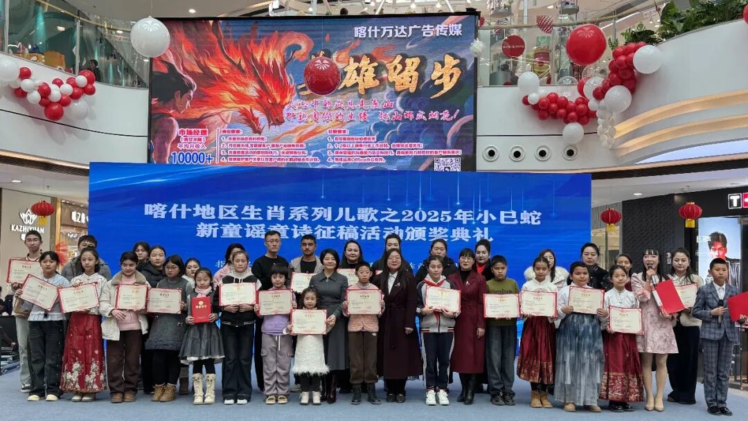 后续的颁奖典礼将现场气氛推向高潮。“能拿到一等奖特别开心!以后我要继续努力,写更多关于家乡和生肖的童谣,让更多人知道我们喀什有多美!”学生组一等奖获得者马绯蔓分享了自己的喜悦。