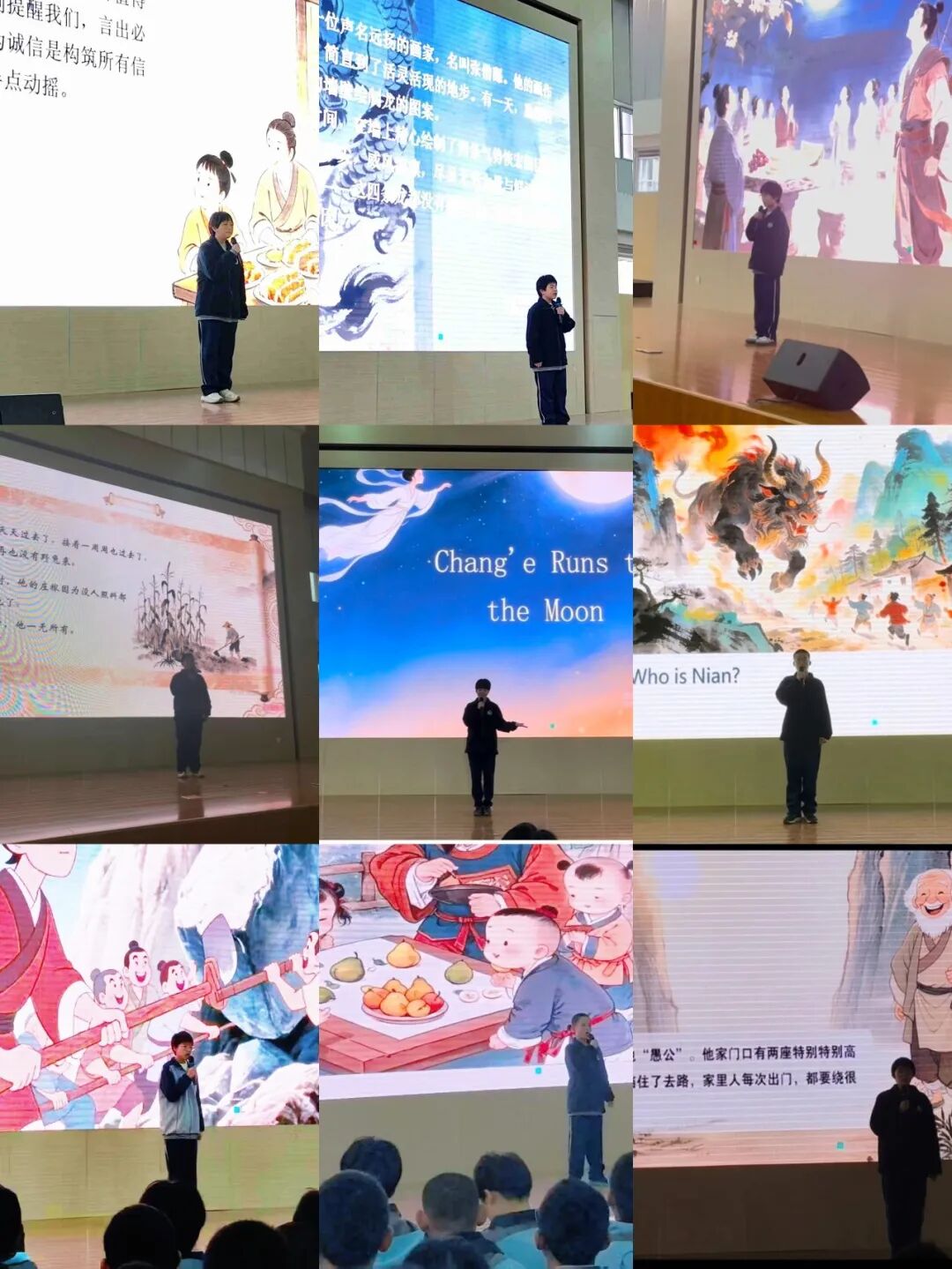 初一年级主任彭伟老师在总结发言中更是语重心长:“同学们,你们今天用英语讲的是过去的故事,但你们正在书写的是未来的篇章。中华文化要走向世界,需要你们这一代人去讲述、去诠释。为中华民族伟大复兴而读书,不是一句口号,而是实实在在的行动。我们要通过自己的努力,让世界听见中国,听懂中国,尊重中国。”他的话语铿锵有力,点燃了在场每一位师生心中的使命感。