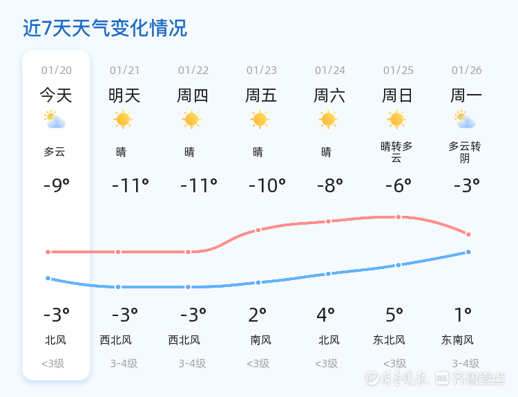 未来三天,东营市天气以晴朗为主,气温持续偏低,低温在-10℃至-11℃之间,高温在-3℃至2℃之间。周四和周五天气晴朗,风力较小,适宜户外活动;周六和周日天气晴转多云,风力略有增强。市民需根据天气变化适时调整衣物,避免因气温波动引发身体不适。