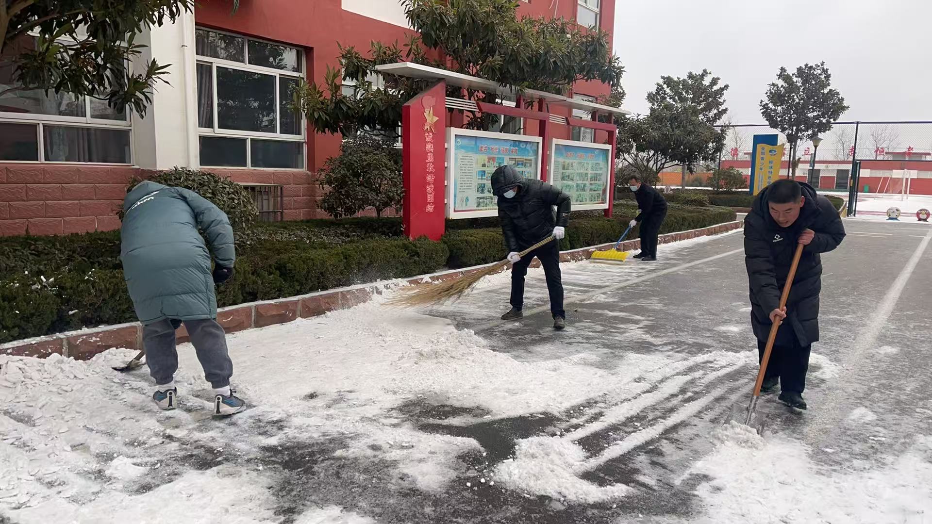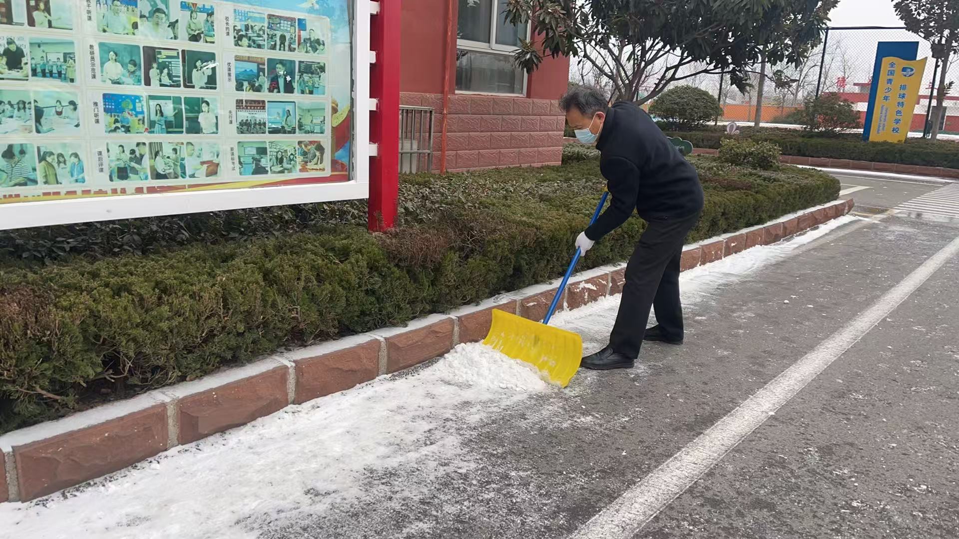 为保障校园道路畅通、师生出行安全,1月19日,临沂新桥小学党支部组织党员教师组成“党员除雪先锋队”,以雪为令、闻令而动,开展校园除雪行动。