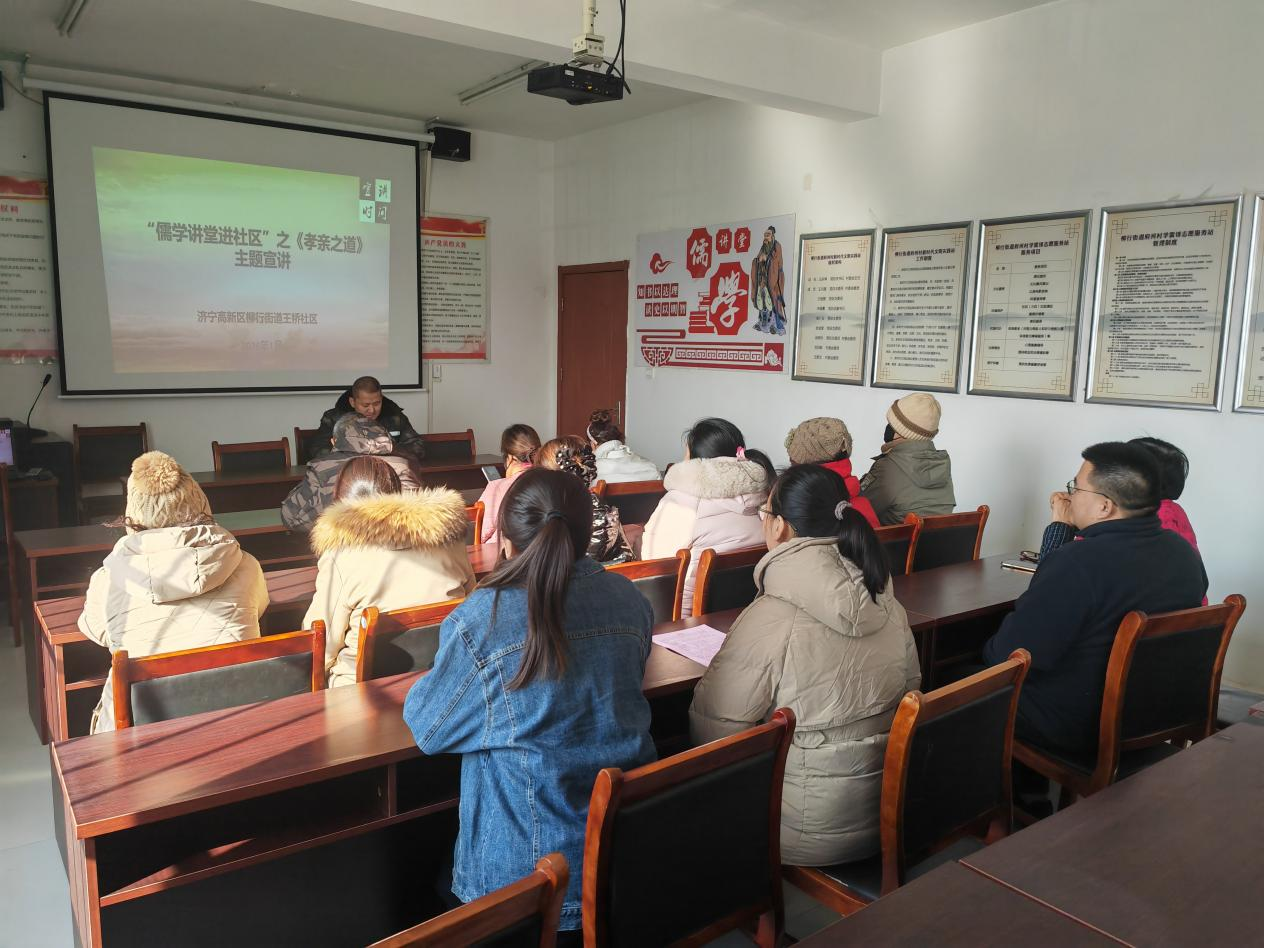 为弘扬中华优秀传统文化,促进家庭和睦、社区文明,进一步丰富美丽社区建设的文化内涵,1月16日,济宁高新区柳行街道王桥社区开展“儒学讲堂进社区”孝亲之道主题宣讲活动。