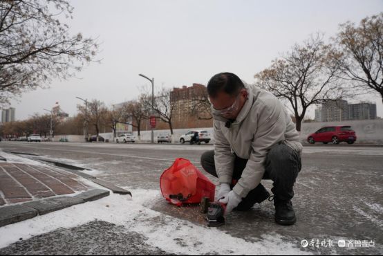 冬日的聊城,寒意浓烈,冰冻的地面上还留有残雪。1月19日,在开发区的一条街道旁,孙华国蹲在地上,手中的角磨机发出刺耳的轰鸣声。一颗钢钉从人行道砖缝中凸出约2厘米,表面已经生锈。火花四溅中,钉子被一点点打磨平整,整个过程不到五分钟。这样的场景,在过去十个月里,孙华国已经重复了160多次。拔掉的钉子长的有十几公分,短的有三五公分。