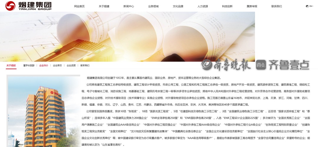 烟建集团有限公司创建于1952年,是主要从事国内建筑业、国际业务、房地产、资本运营等业务的大型综合企业集团。
