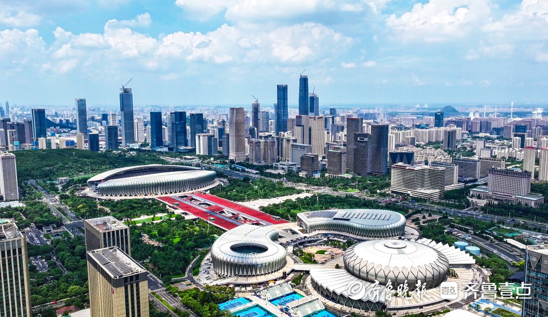 中央商务区崛起成峰——绿地国金中心顺利封顶、全面成型,中信泰富主塔楼即将竣工,片区重点项目建设有序推进,累计建成商业商务载体405万平方米,市场主体数量超过1.5万家;
