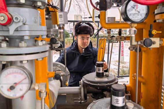 在银装素裹的场站、管线间,所属燃气公司全力守护岛城燃气管网安全平稳运行,保障千家万户温暖过冬。场站运行工徐大伟在积雪覆盖的LNG场站中熟练操作阀门,细致检查每一处管线与气化设备,确保燃气输送稳定可靠;广博路文体中心运行人员矫立业利用周末时间对调压设备进行维护与检查,保障居民活动场所供暖无忧;工段长李江带领班组加强对锅炉房及关键设备的巡查频次,24小时轮班值守,实时监控运行数据,避免因低温导致的设备异常;城市街巷中,所属天然气公司巡线人员加密巡检频次,对城市主干管网调压站、气代煤区域入户接口、重点施工区域逐一排查,全天候驻守盯防,筑牢燃气安全防护网。