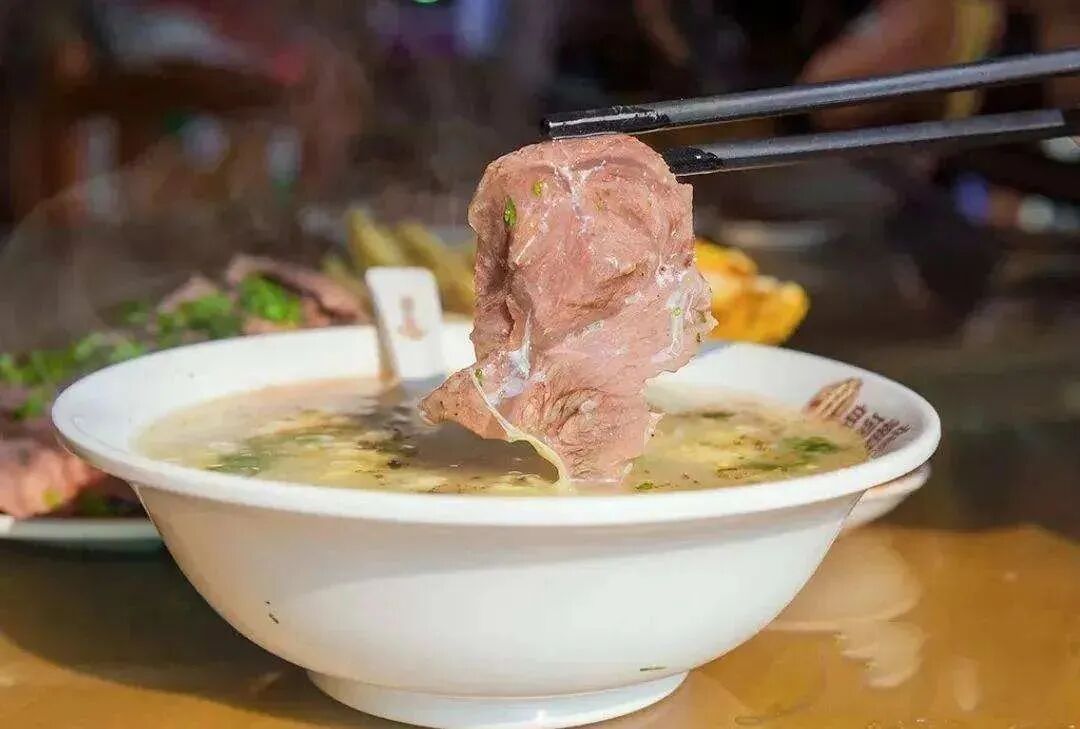 以牛骨、羊肉为底,慢火熬煮至肉质软烂,汤色醇厚,加入大量黑胡椒调味,不腥不膻,辛辣感恰到好处。